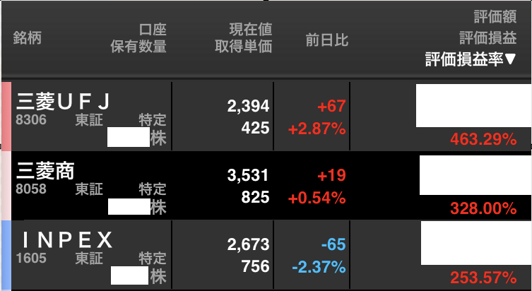 🥇1位 三菱UFJFG(8306)+431.53%