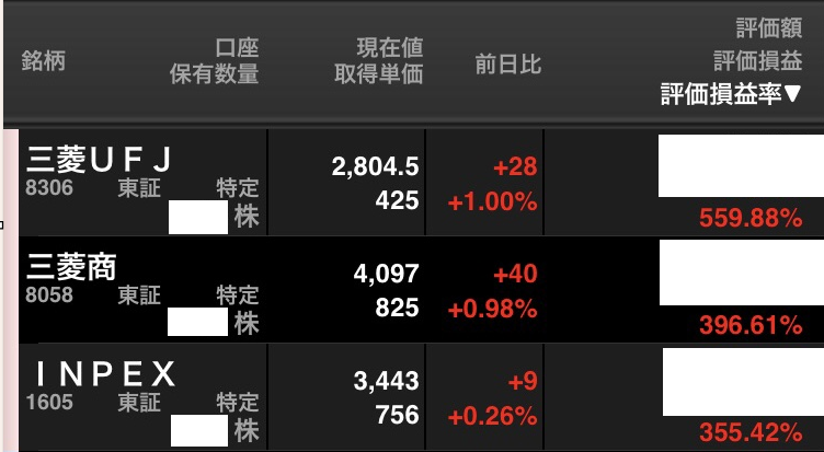 🥇1位 三菱UFJFG(8306)+484.82%